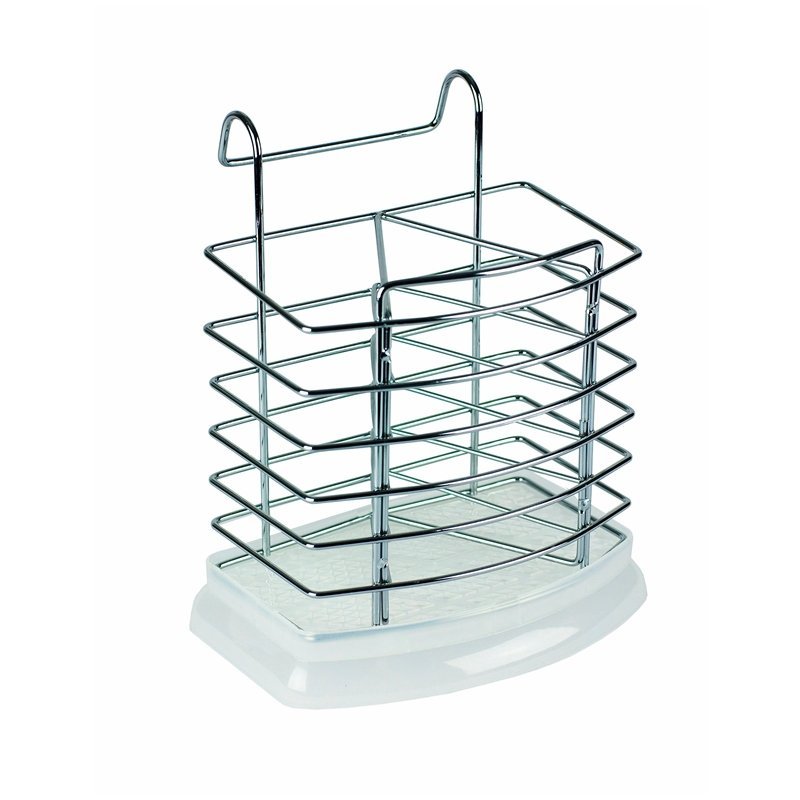 Настольная сушилка предназначена для сушки столовых приборов, позволяет эффективно использовать пространство на кухне, освобождая рабочую поверхность. Изготовлена из металла, имеет пластиковый поддон и разделитель внутри отделов. Выполнена в универсальном цвете хром, гармонично впишется в любой интерьер. Имеет компактный размер, при этом способна вместить достаточно много ложек, вилок и других приборов. Крепление - на рейлинг.