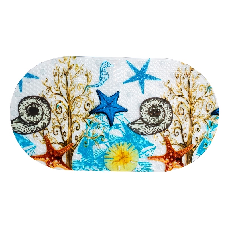 Антискользящие коврики могут быть прямоугольной или овальной формы, иметь выпуклые части на лицевой части, создающие массажный эффект и оказывающие расслабляющее действие на стопы ног или термоиндикационное покрытие, реагирующие на температуру воды. Последний вариант предназначен для использования при купании детей.