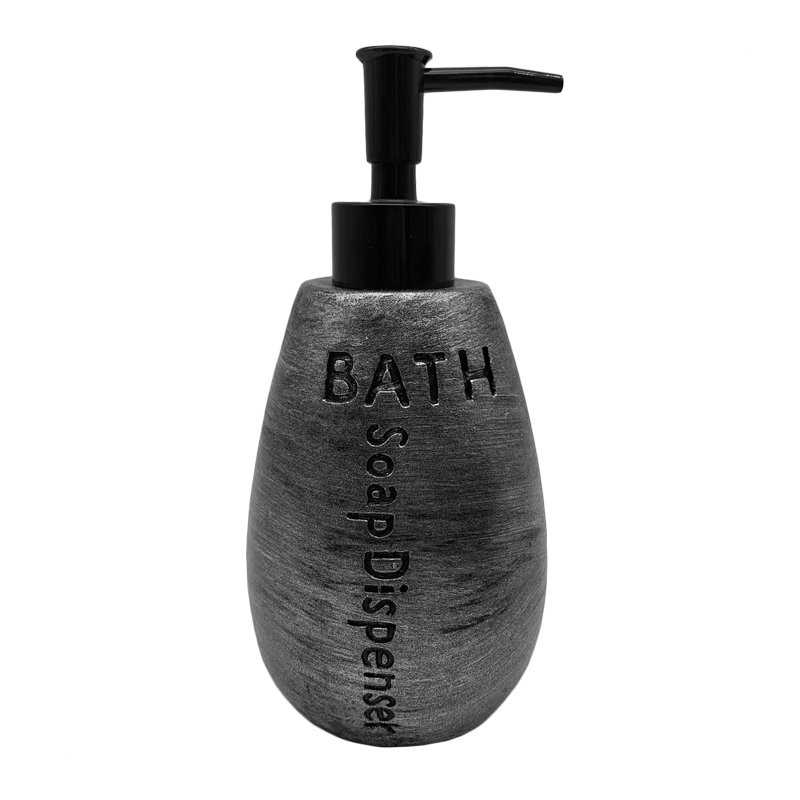 Дозатор для жидкого мыла позволяет экономично расходовать моющие средства, имеет надежный носик, легкое, плавное нажатие. Выполнен из натурального материала: известняковая смесь. Качественный и приятный на ощупь черный матовый носик устойчив к истиранию. Легко моется и наполняется. Подходит для мыла, шампуня, кондиционера для волос и для моющего средства.