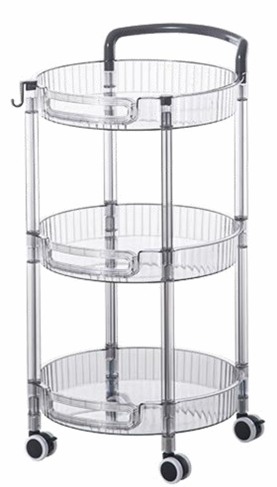 Этажерка 3 яруса на колесах из ПЭТ 34х33,6х66,5см круглая, прозрачная SY-7100-3 Akvali