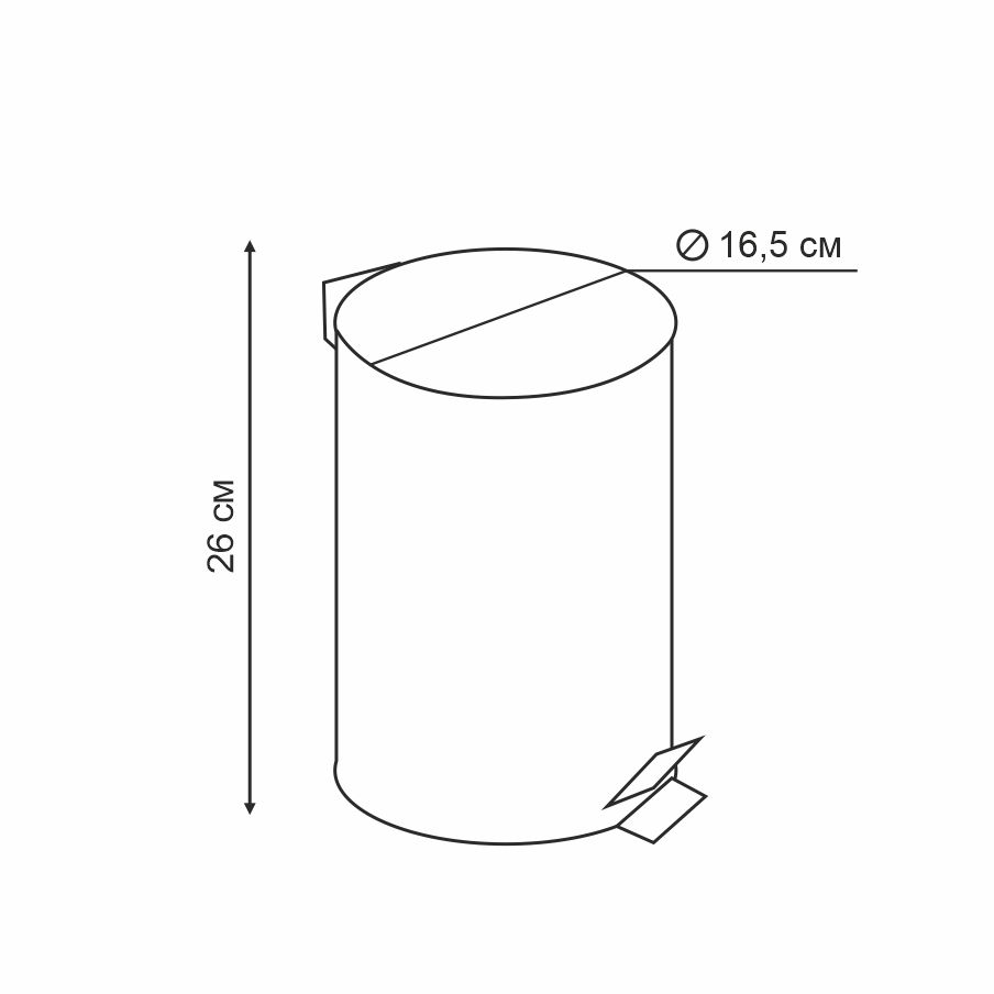 Размер: 16,5 х 16,5/23,5 (с педалью) х 26 см.