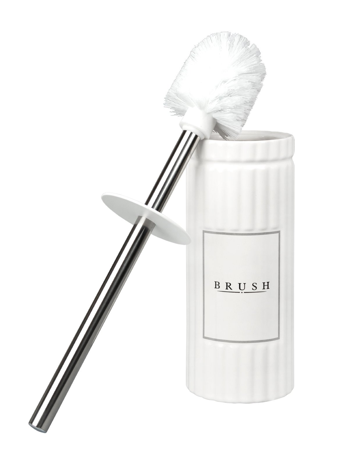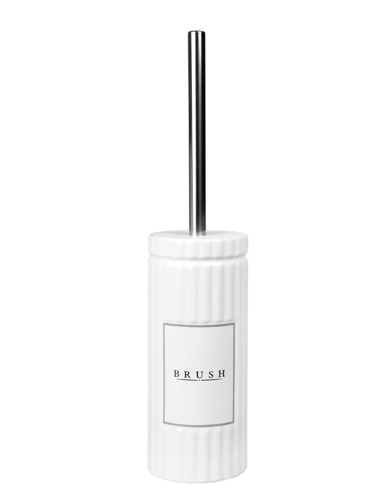 Ерш сантехнический напольный. Изделие включает в себя ерш с хромированной ручкой и керамическую колбу цилиндрической формы. Щётка имеет густой жесткий ворс, обладает высокой стойкостью к стиранию.