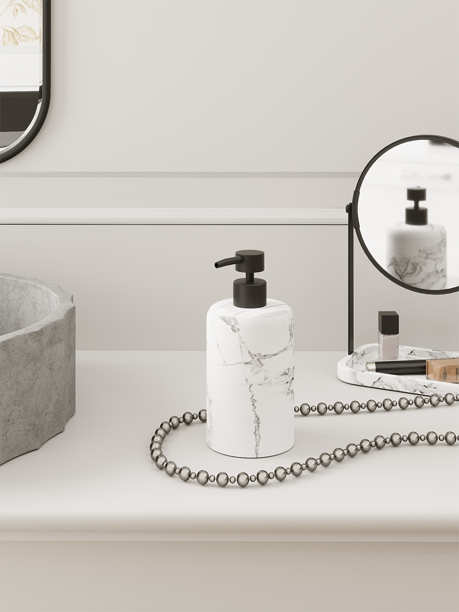 Коллекция Бьянка состоит из шести аксессуаров для ванной комнаты в природном стиле с эффектом натурального мрамора. Использование мрамора в акцентах придаёт особый шарм и уместен в любом интерьерном решении.