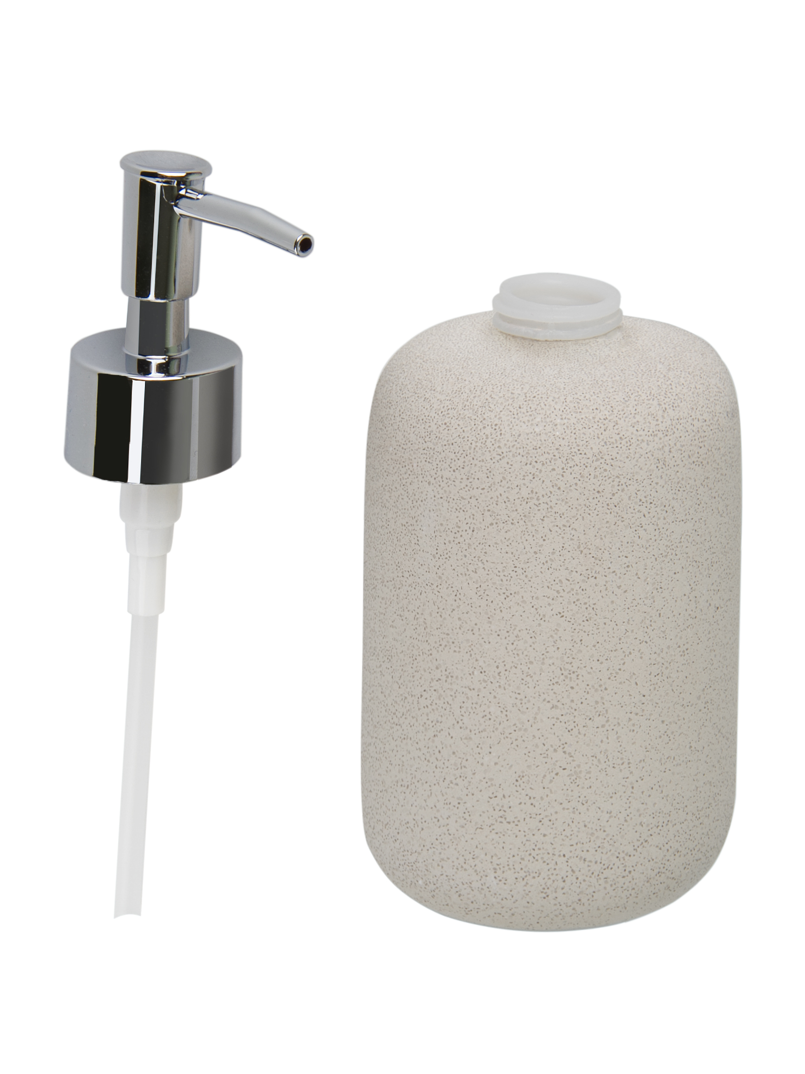 Дозатор настольный для ванной комнаты цилиндрической формы, предназначен для порционной подачи мыла, шампуней и других гелеобразных жидкостей.