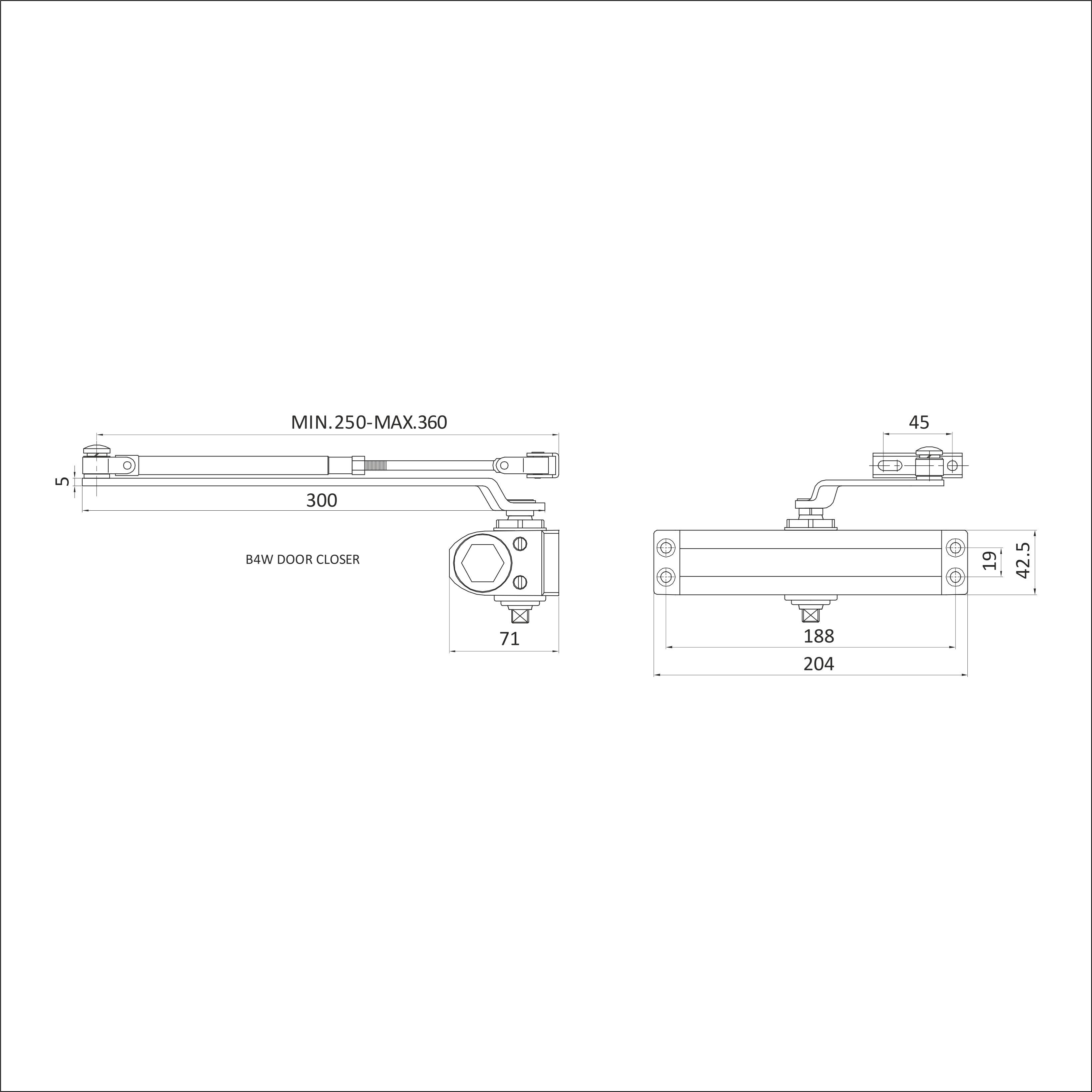 Дверные доводчики «БУЛАТ», предназначены для плавного, автоматического закрытия двери. Подходит для большинства пластиковых, деревянных и металлических дверей. Устанавливаются в квартирах, офисах, промышленных и других помещениях. Функции: регулируемая скорость закрывания двери, регулируемая скорость окончательной доводки, АНТИВАНДАЛЬНЫЙ КЛАПАН. Модель подходит для дверей весом до 140 кг. Температурный режим работы от -42 до +50 градусов. Комплект поставки Дверной доводчик Рычаг с винтовым соединением колена Крепеж Инструкция по монтажу и эксплуатации, совмещенная с паспортом изделия Шаблон для установки.