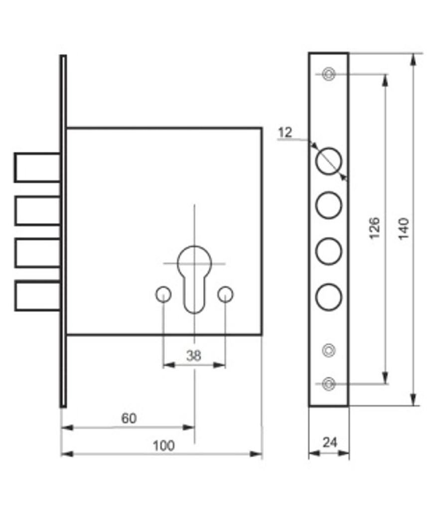 Корпус врезного замка "2514-Ц-4Р Верхний" 4 ригеля d-12мм, без мц (2 крепотверстия ЗВЦ-12 Сенат)