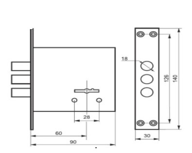 Замок врезной "Верхний 3014C-3P" 3 круглых ригеля d-18мм, сувальдный (2 крепотверстия)
