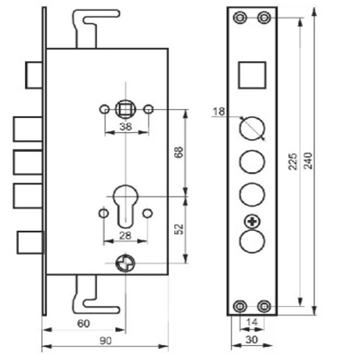 Корпус врезного замка с защелкой и задвижкой, автоматический.