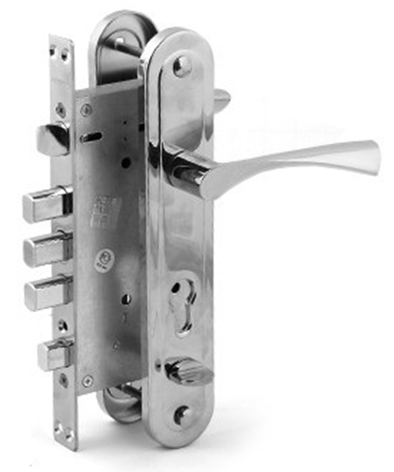 Замок врезной ЗВ "Зубер" 8023-85 с ручками, трёхригельный, хром, правый (B 80мм)