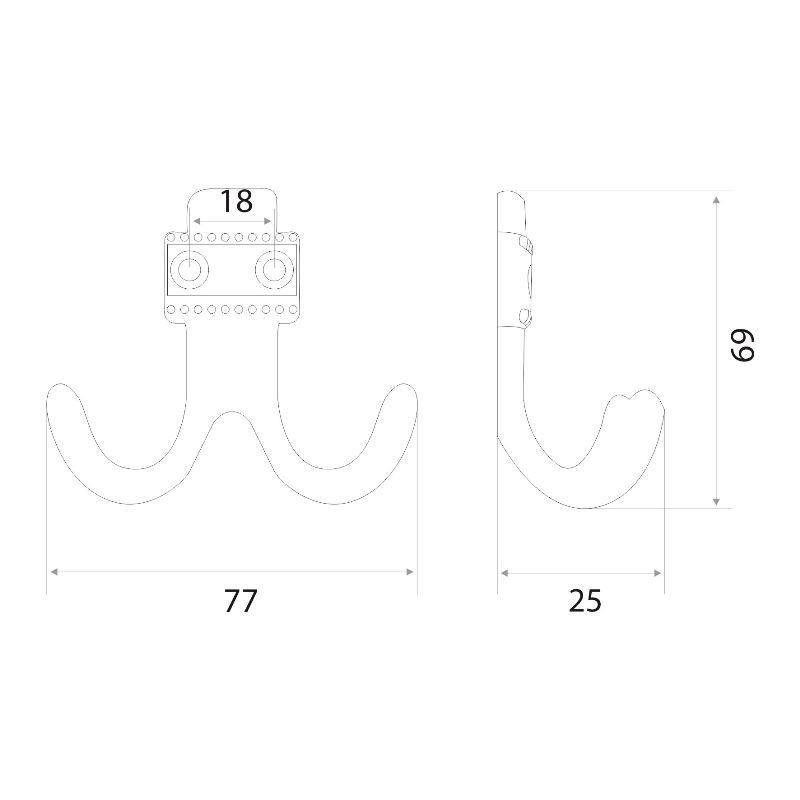 Крючок мебельный Trodos "ZY-209В" 2-рожковый, сплав ЦАМ, хром матовый