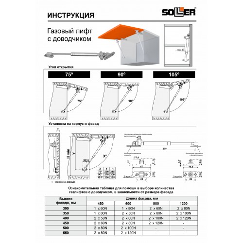 Газовый лифт SOLLER N80 матовый хром с доводчиком