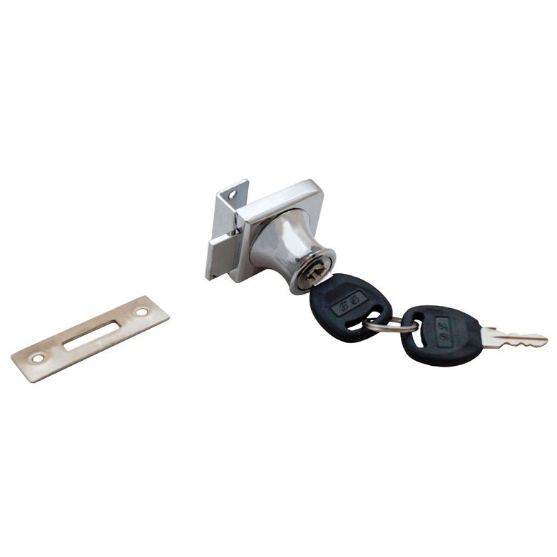 Замок-стекло №804 квадратный хром, 2 пластик ключа