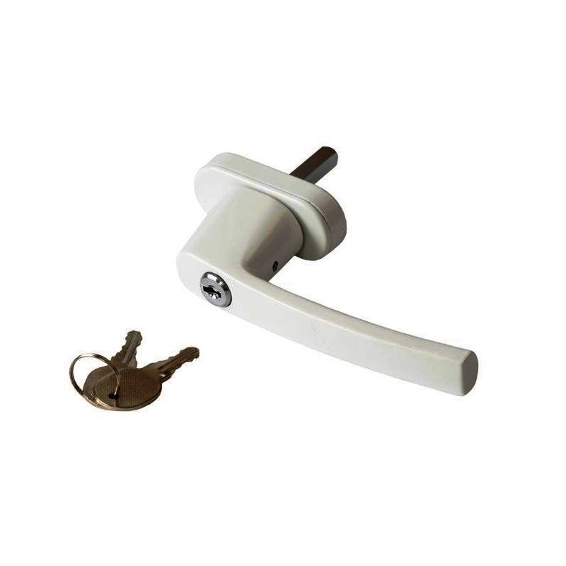 Ручка оконная для пластикового окна с замком, 2 ключа/кнопка закрытия, штифт35 мм, белая (WHL35)