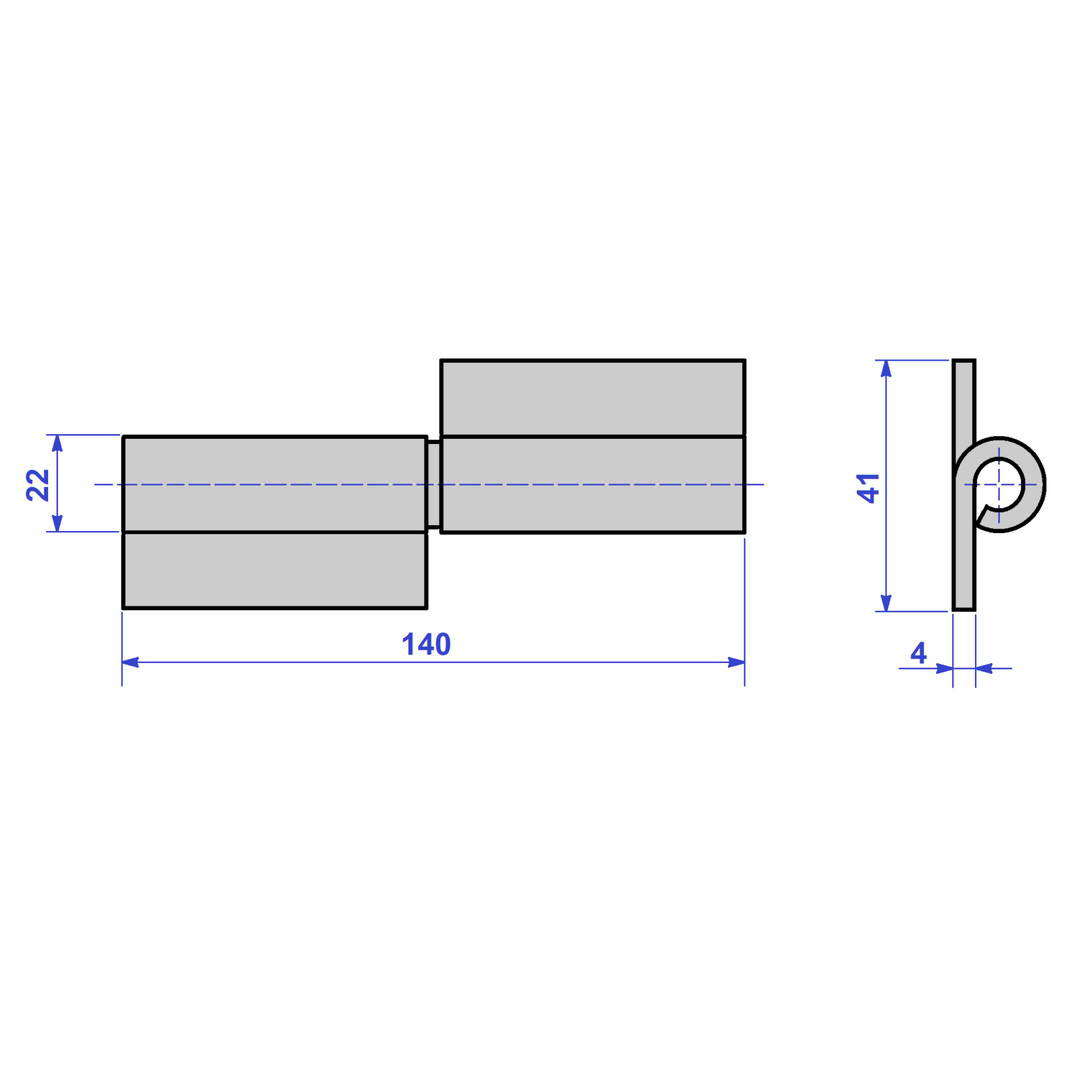 Гаражная петля на площадке 140х22 изготовлена путем сгибания стальной пластины в петлю круглой формы. Вставной штырь фиксируется при помощи запрессованной шайбы. Предназначена для навешивания металлических дверей или ворот дома, гаража или хозяйственной постройки.