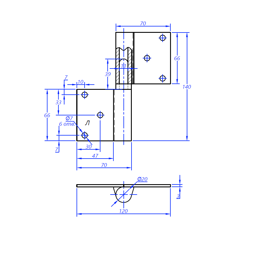 Диаметр монтажных отверстий 7 мм по три на каждой площадке. Монтируется при помощи болтов (винтов) диаметром 6 - 6,5 мм, саморезами или сваркой. Карта петли позволяет распределить нагрузку по полотну двери за счет увеличения площади сварного шва, что увеличивает надежность крепления.