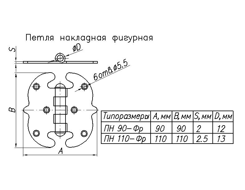 Петля накладная фигурн. НОЭЗ ПН 5-90-SL черный матовый