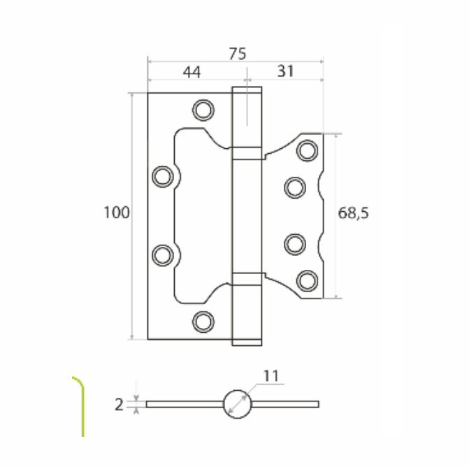 Петля накладная Vrata 100х75х2,0 без врезки, б/к, хром, флоупак
