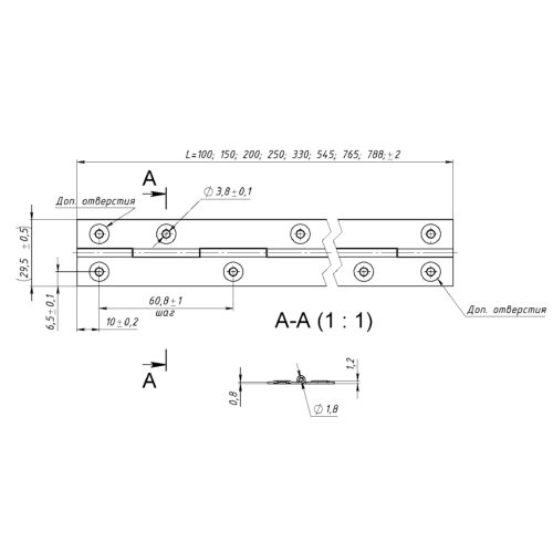 Петля рояльная 545 мм, цинк