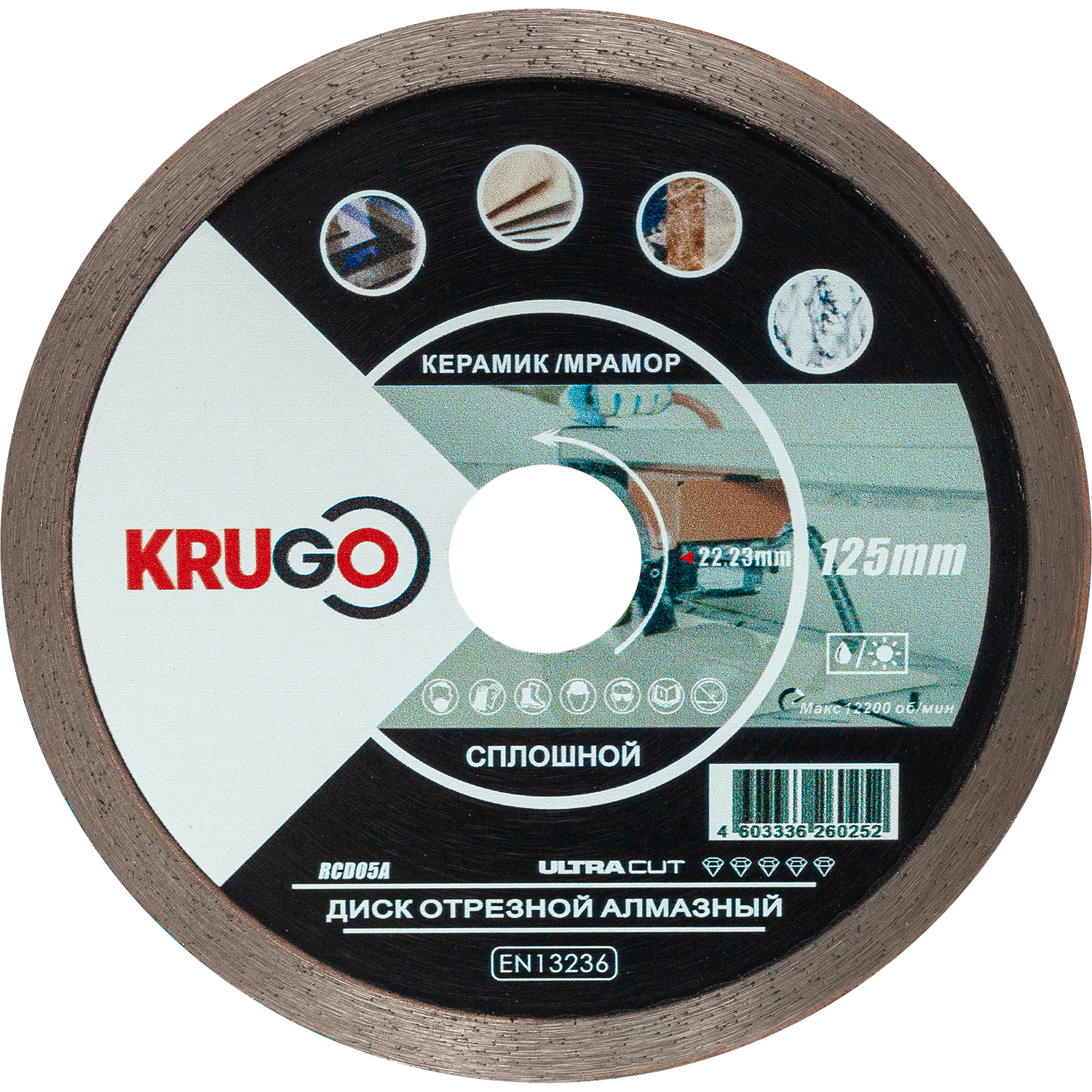 Диск алмазный KRUGO по керамике 125x1.4x22x8 мм сплошной
