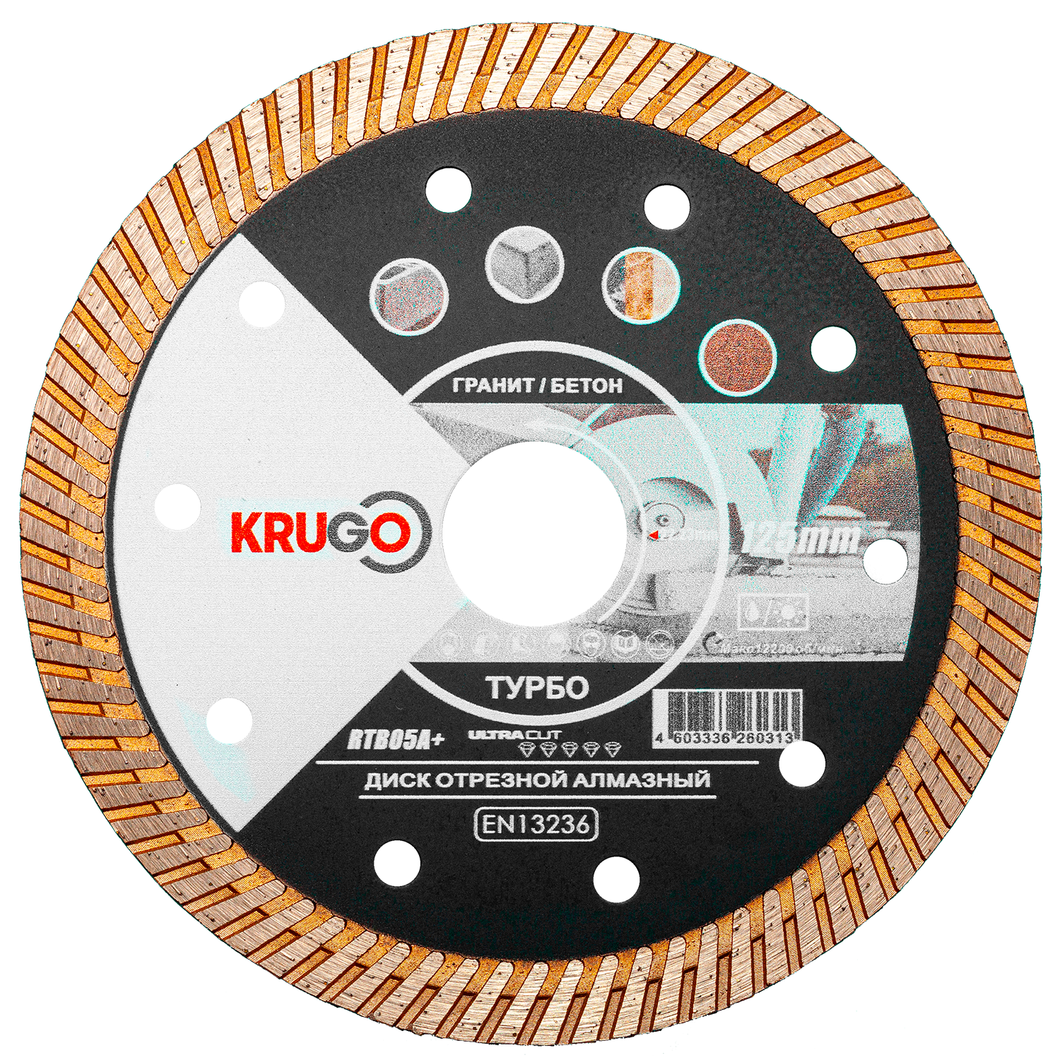Алмазные диски турбо KRUGO RTB – профессиональные диски для эффективной резки бетона и гранита с увеличенным сроком службы.
