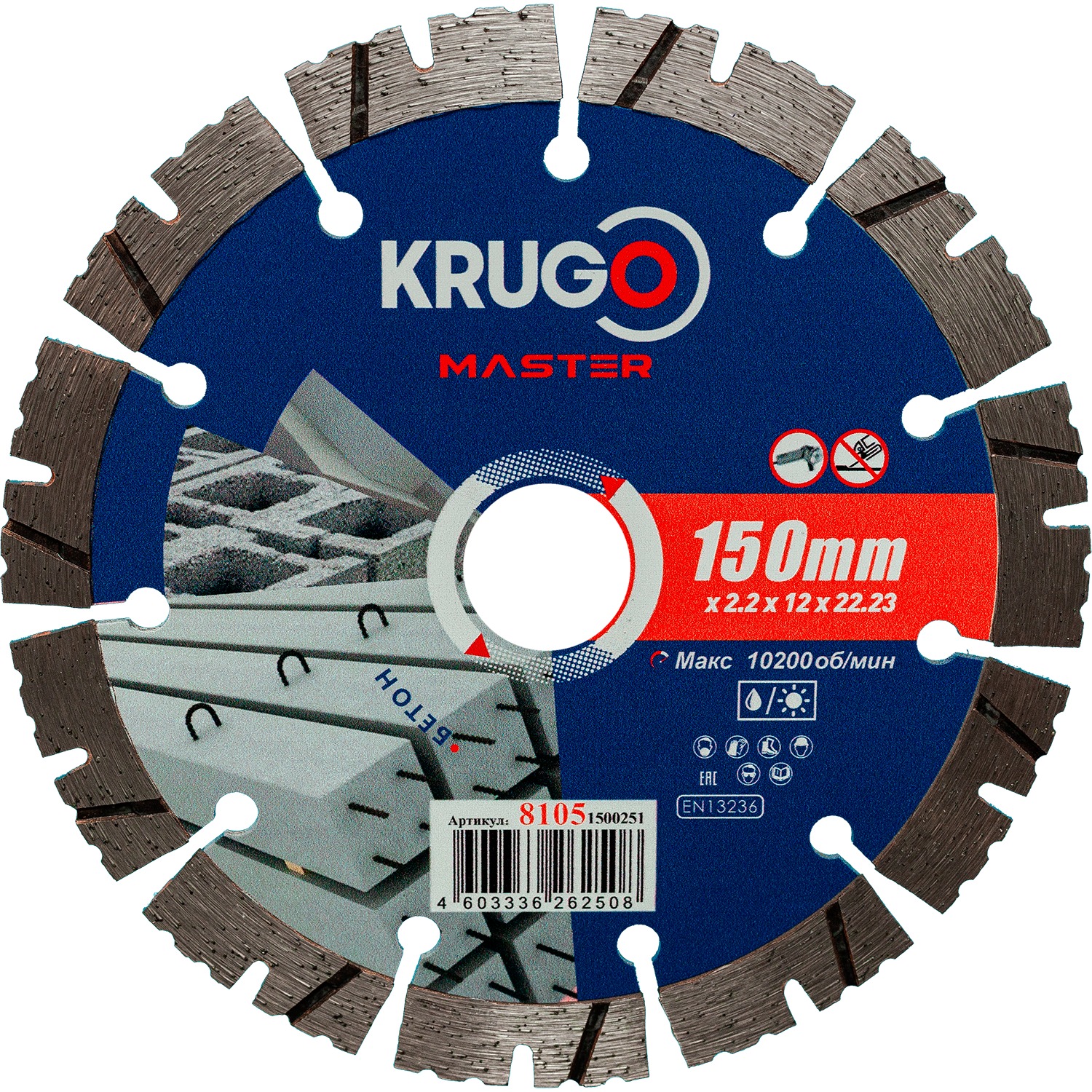 Диск алмазный KRUGO MASTER турбо по бетону 150х2.2х22х12 мм сегментный