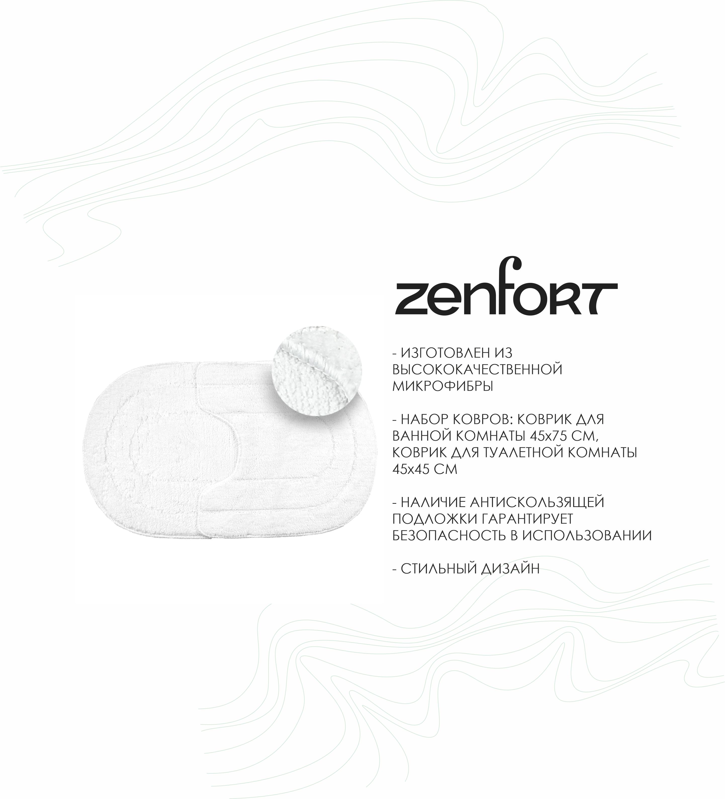 Набор ковров Zenfort коллекция "Эллипс" микрофибра 45х75см/45х45см, белый*
