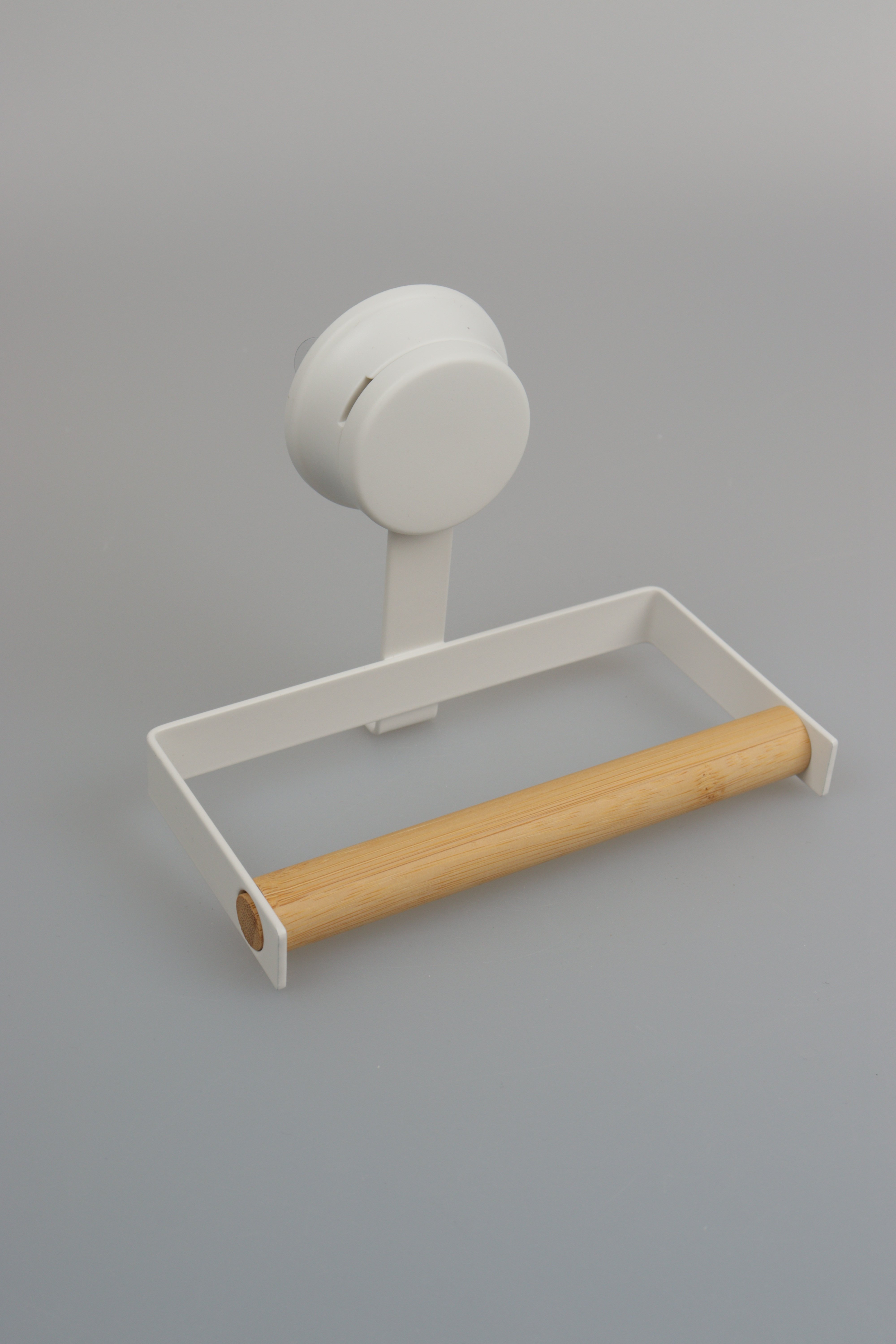 Держатель для полотенец белый, металл/бамбук на присоске W7837-3
