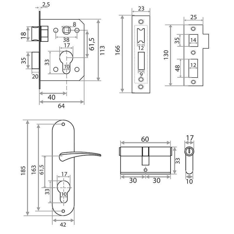 Замок врезной "Trodos" ЗВ61/76 SN, никель