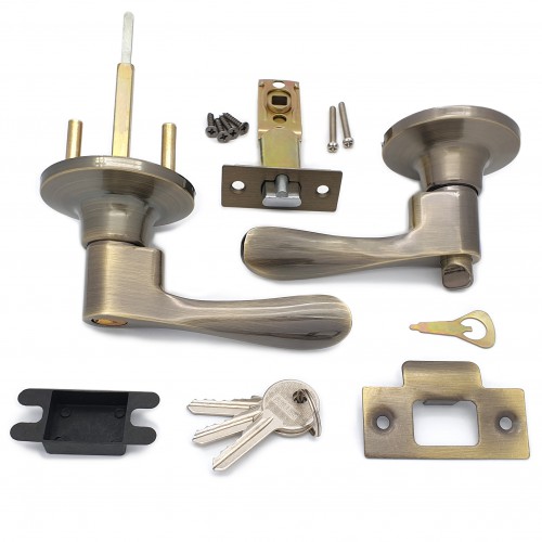 Ручка-защелка нажимная межкомнатная ЗВ3-01 SOLLER бронза с ключом и фиксатором