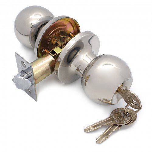 На внешнем кнобе установлен замок, на внутреннем - фиксатор. Это позволяет как просто фиксировать дверь в закрытом положении, так и ограничивать доступ в помещение.