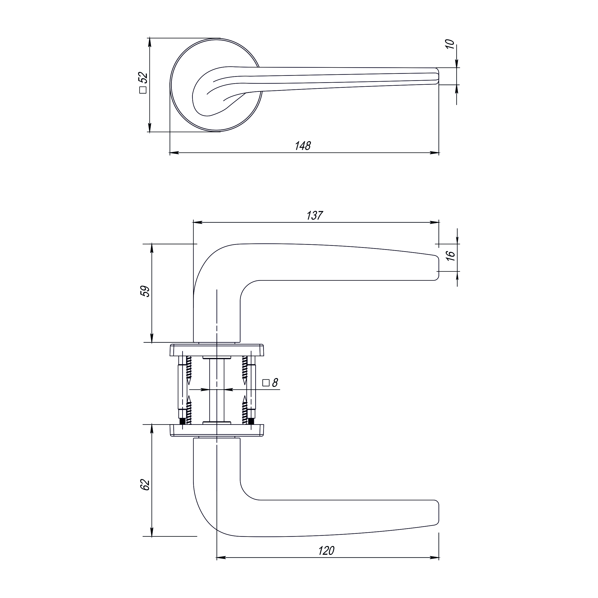 Комплектация: дверные ручки 2 шт, соединительный квадрат 1 шт, шестигранник 2шт, саморезы 8 шт, стяжные винты 2 шт