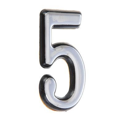 Цифра дверная пластик "Аллюр Большая" "5" клеевая, хром