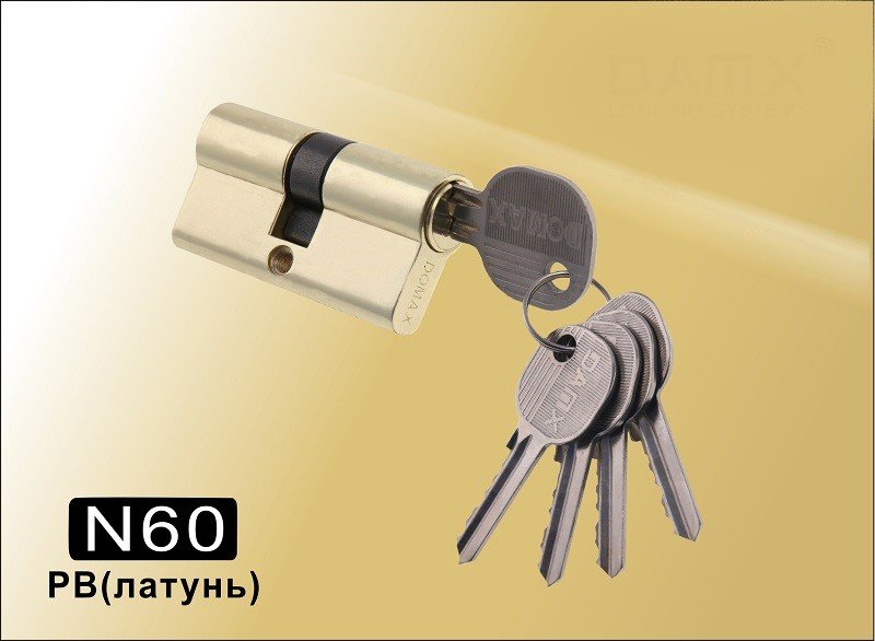 Механизм цилиндровый простой ключ-ключ N60 мм DAMX PB (Полированная латунь)
