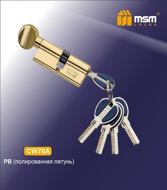 - Механизм цилиндровый "MSM Латунь"ЦМВП 70-5К с 5 перфоключами/вертушкой, золотого цвета (PB).