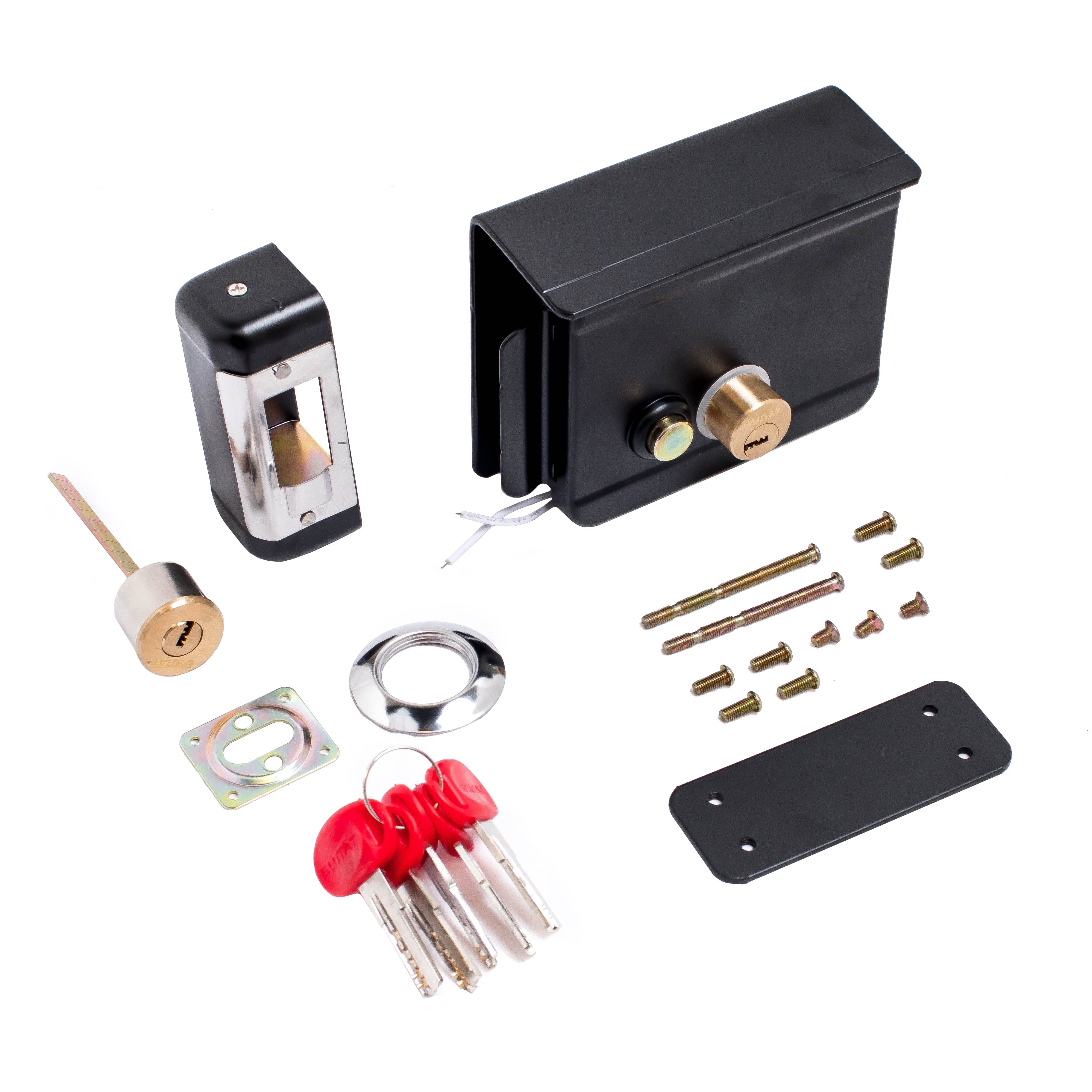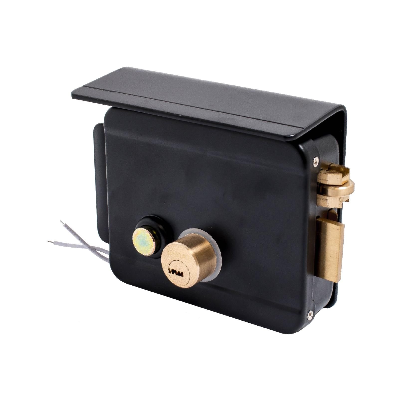 Замок накладной электромеханический соленоидного типа с защитной пластиной от попадания влаги в корпус замка. Предназначен для установки на внутренние и уличные двери, гаражные ворота, калитки, двери складских помещений с возможностью их дистанционного открывания, в том числе для работы с устройствами управляемого доступа (видеодомофонами, контроллерами) и может работать при температуре от -40 до +50 °C. Для электропитания необходим источник постоянного тока с напряжением 9-12 В.