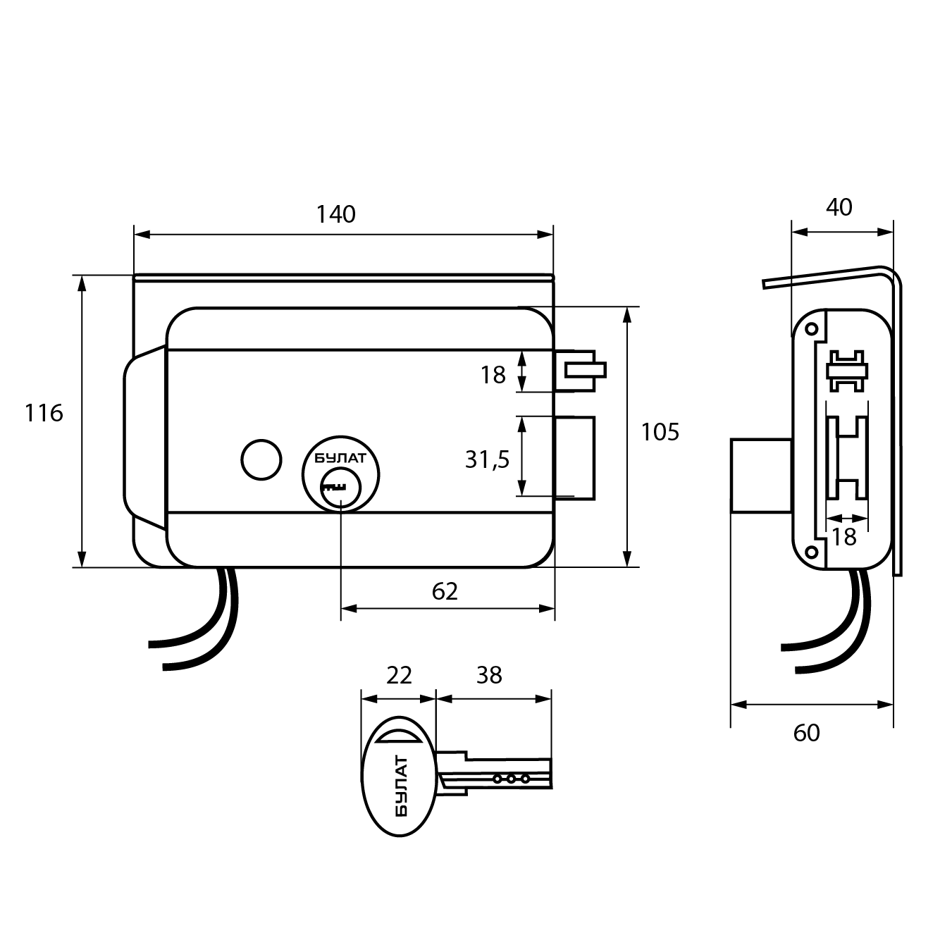 Замок накладной электромех БУЛАТ ЗЭМн 650 ПП с защитной пластиной ДЛЯ КАЛИТОК И ВОРОТ