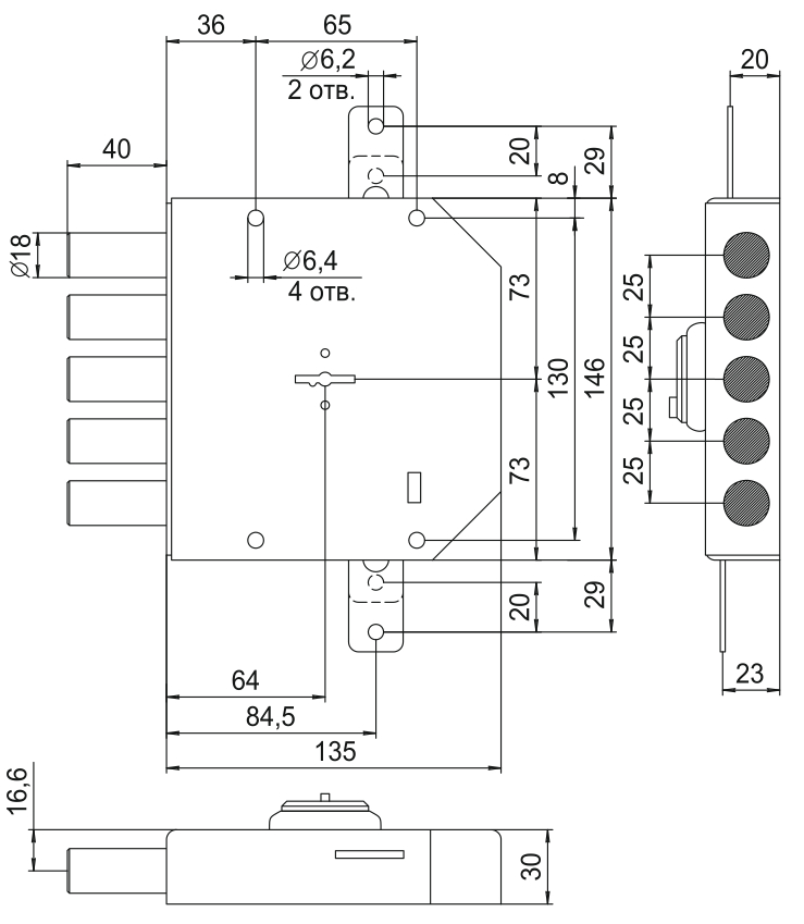 - Тип установки: накладной замок, который устанавливается поверх двери.