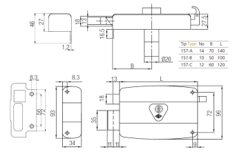 Замок накладной механический KALE KILIT 157B,BS50,BL,3K(Eng.),R,SP,Ros,STB,к-к