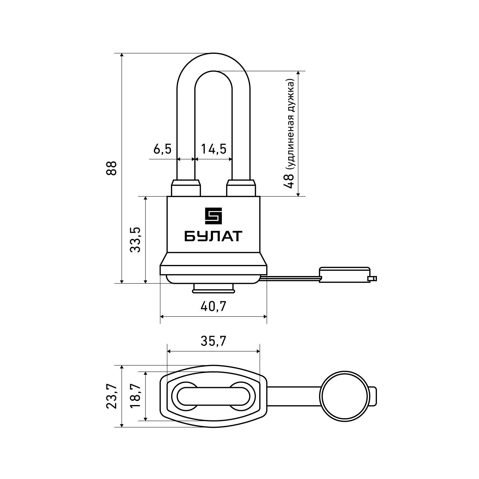 Замок навесной «БУЛАТ» предназначен для запирания, распределительных щитов, почтовых ящиков, гаражей, складов, подвалов и прочих помещений. Замок запирается автоматически при нажатии на скобу без использования ключа. Пластиковый кожух защищает замок от внешнего воздействия окружающей среды. Замок обладает длительным сроком эксплуатации. Гарантийный срок 5 лет с момента продажи через розничную сеть. Размер корпуса: 41х33,5х24 мм Диаметр дужки: 6,5 мм Проем дужки по высоте: 48 мм Проем дужки по ширине: 14,5 мм