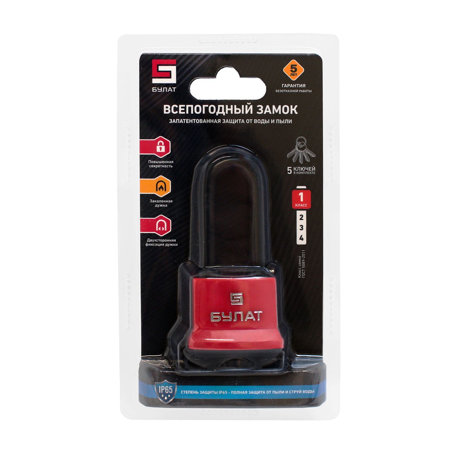 Замок навесной БУЛАТ ВС 1-П41-01 ПЛ всепогодный 5 кл. d=6,5мм