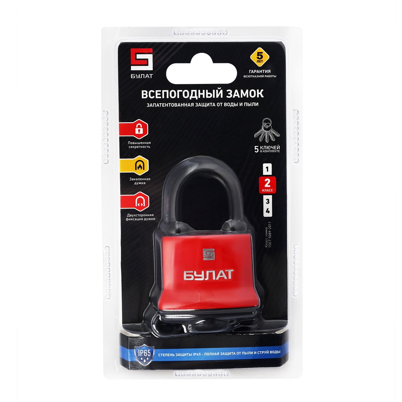 Замок навесной БУЛАТ ВС 1-П54 ПЛ всепогодный 5 кл. d=8,6мм