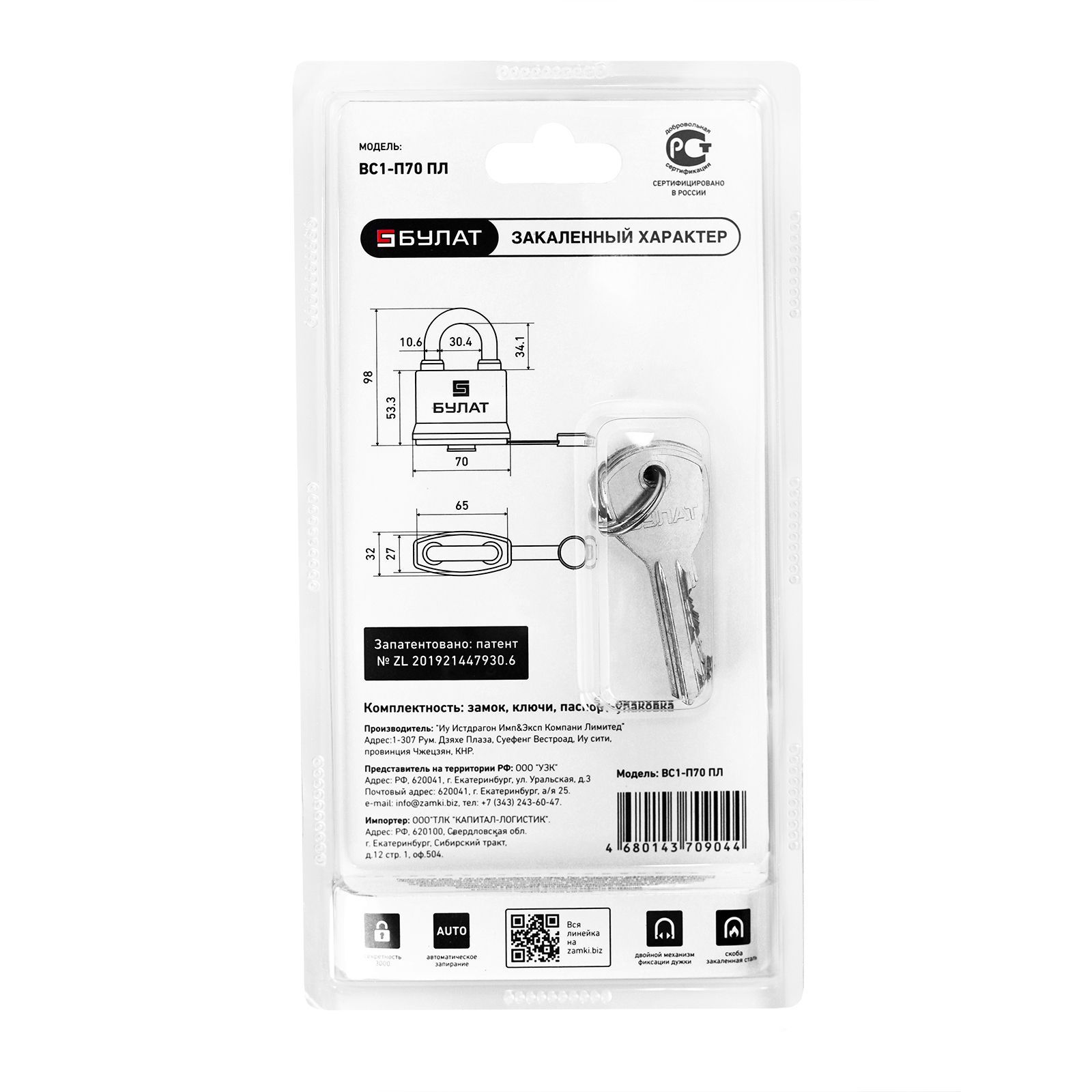 Замок навесной БУЛАТ ВС 1-П70 ПЛ всепогодный 5 кл. d=10,6мм
