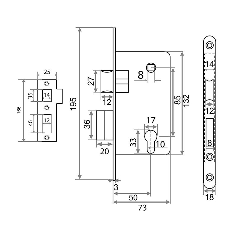 Замок врезной "Trodos" 85R1 под цилиндр, хром (CP)