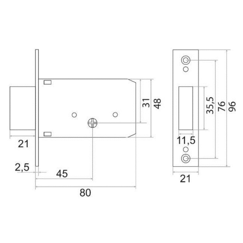 Замок врезной "Trodos" 156К (CP) крестовой ключ, хром