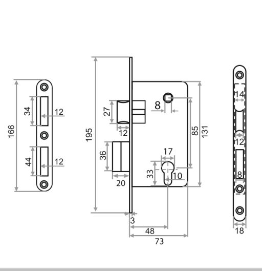 Замок врезной "Trodos" 85R1 под цилиндр, никель (SN)