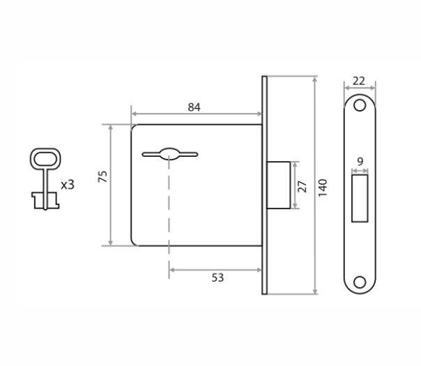 Замок врезной Vrata ЗВ8-4 сувальдный без защелки, цинк