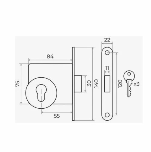 Замок врезной Vrata ЗВ1-2 цилиндровый без защелки, без ручки, серый