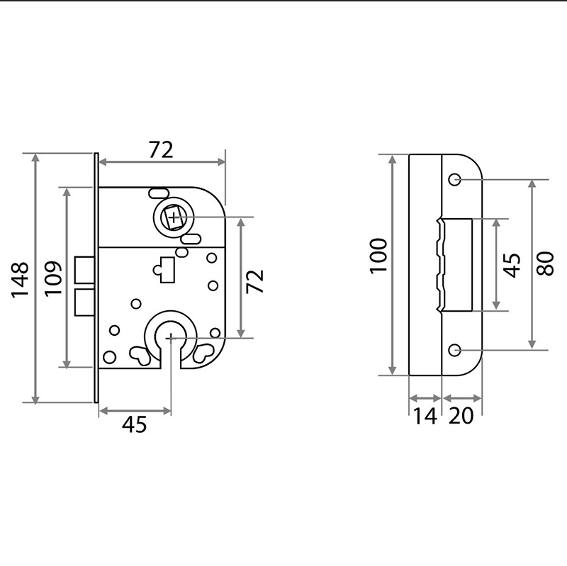Корпус замка 2018 под цилиндр без ответной планки, хром