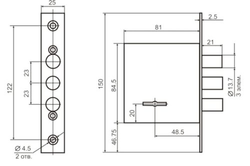 Замок врезной ЗВ8-8Д/13 "Просам" (70900) 3 ключа