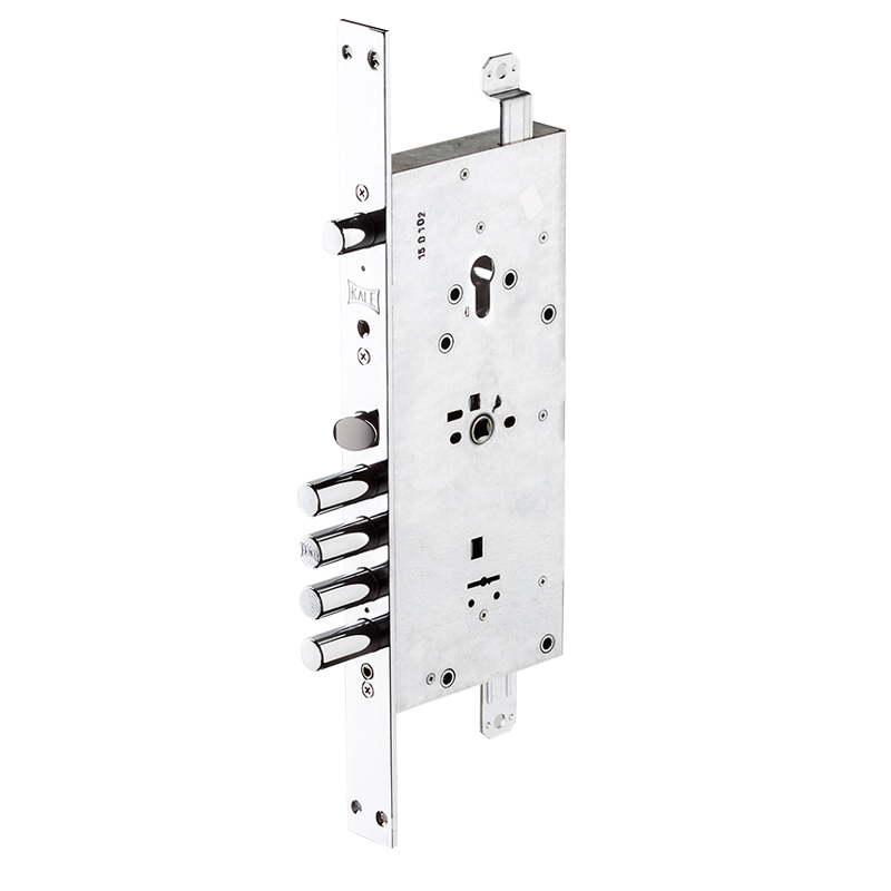 Двухсистемный перекодируемый относится к премиум классу и предназначен для установки в металлические двери. В данной модели в одном корпусе объединены цилиндровый и сувальдный механизмы секретности, а также защелка. Перекодировка позволяет владельцу замка сохранить секрет своего замка в тайне от изготовителей и установщиков двери.